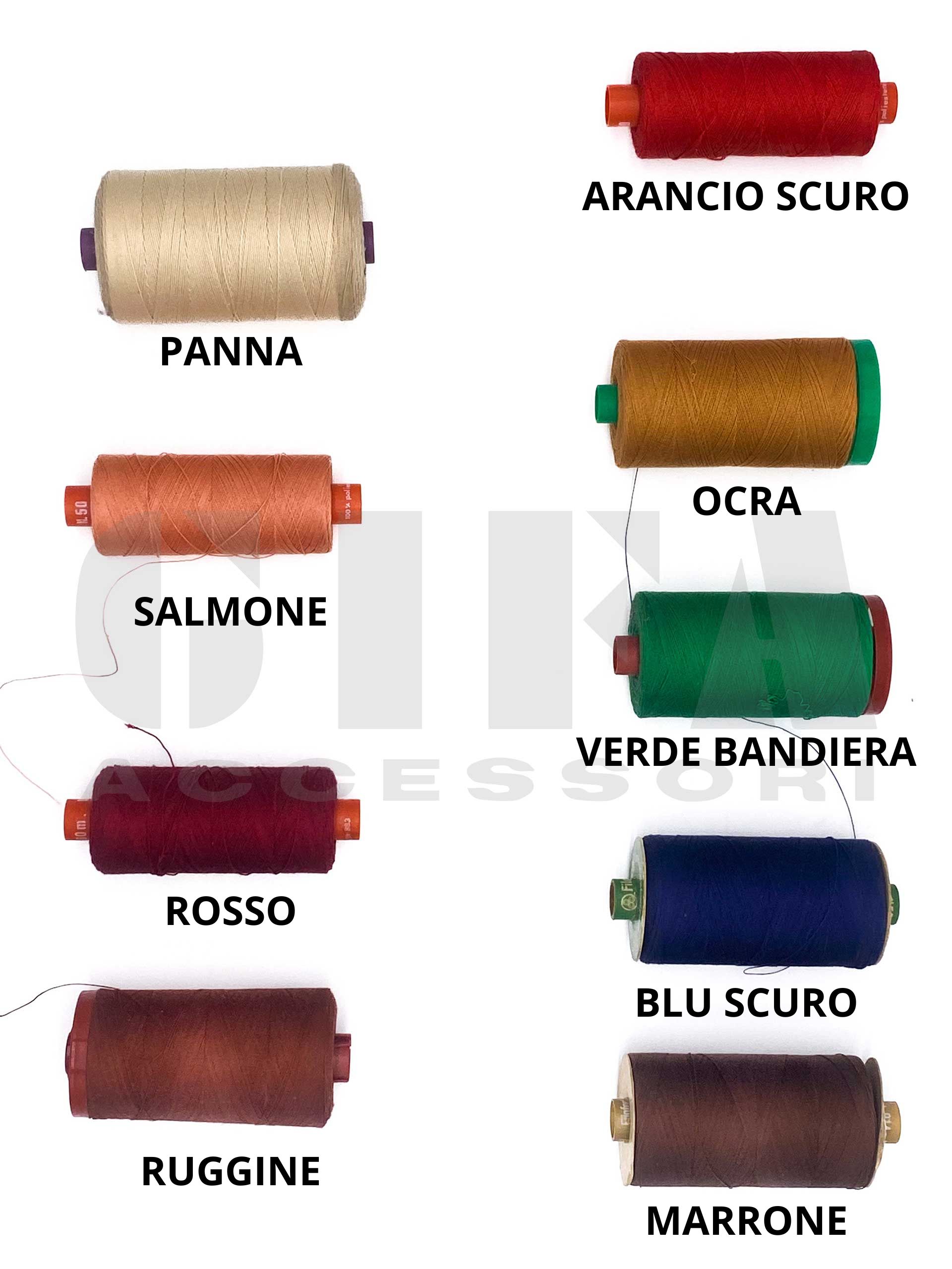 SALMONE, RUGGINE, PANNA, ROSSO, ARANCIO SCURO, BLU, VERDE BANDIERA, MARRONE, OCRA